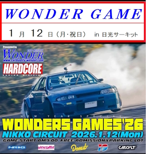 2009/10/1 PRODUCTSのエアロパーツ紹介ページを一新しました。ぜひご覧ください 2009/9/29 シルビア、180SX用の30mmワイドフェンダー(前後)が完成しました。トップページにバナーがあります。ぜひご覧ください 2009/9/11 即ドリ仕様の180SXを入庫しました。かなりお徳な1台です。詳しくはコチラです。ぜひご覧ください 2009/9/10 「走行会レポート」の欄に、9月6日に行われたWONDER走行会のレポートをアップしました。ぜひご覧ください 2009/9/7 11月23日のWONDER走行会の受付を開始しました。どしどしエントリーお待ちしております。 2009/8/31 トップページをシンプルに見やすくリニューアルしました さらに詳しい更新履歴はこちら |